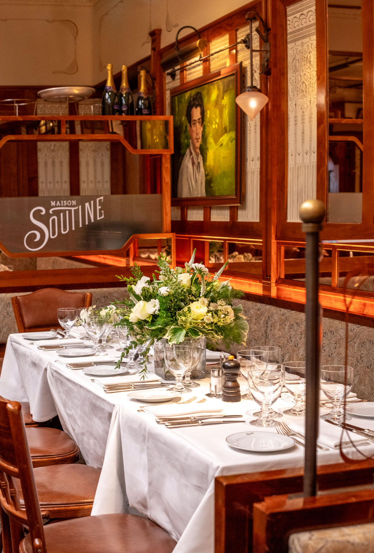 Embracing the look and feel of Paris’ grand cafés, on a more intimate and local scale, Soutine’s private room offers relaxed all-day bistro dining in a neighbourhood setting. Comfortably seating 40 guests, the private dining room reflects heritage, with walls populated with artwork reflecting a variety of genres.